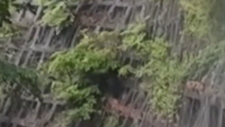 15日、山梨県甲州市の県道で急角度ののり面をのぼるクマが目撃されました。