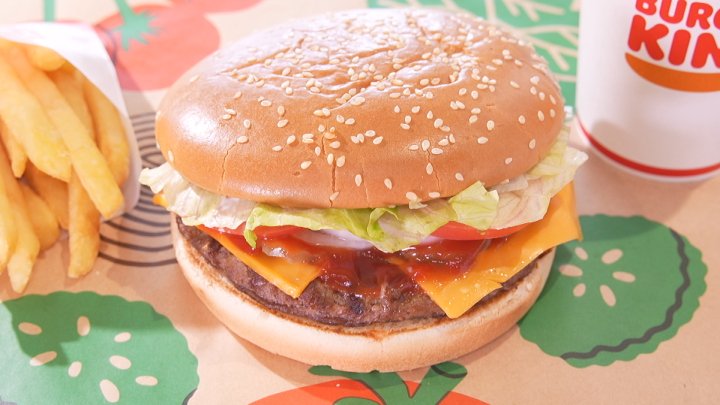 「こちらが、人気ナンバーワンメニューの『ワッパーチーズ』です。見てください、この大きさ!」