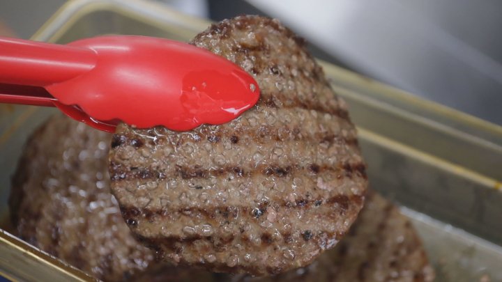 「肉汁がたっぷりで、旨みが凝縮されています。野菜のシャキシャキ感とフワフワのバンズともよく合いますね!おいしい」