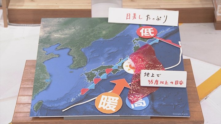 35.5℃がこれまで最も高い気温であることを頭の片隅に入れておいていただいて、これから天気を説明します。