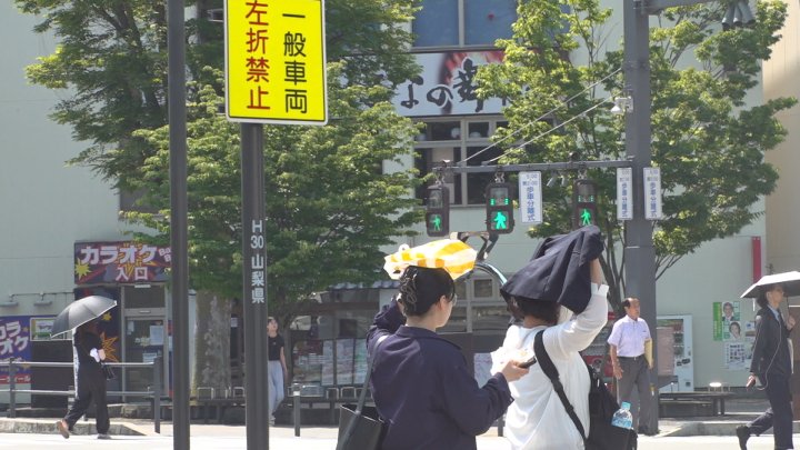 きょうの県内は午前11時までの最高気温が勝沼で33.7度、甲府で32度、韮崎で31.4度などとなっていて、県内の10の観測地点のうち、6つの地点ですでに30度を超えています。