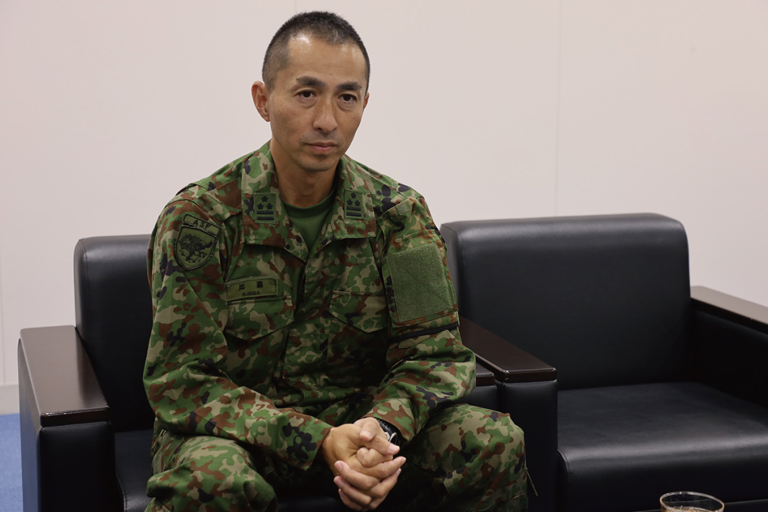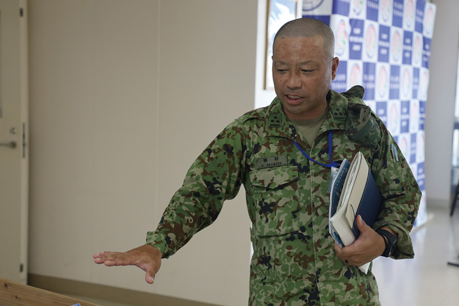 駐屯地を案内してくれた岡村氏前出の比嘉氏は沖縄本島南部の南城市出身で、祖母は沖縄戦の経験者だ。幼少期より戦争の悲惨さや命の大切さを繰り返し聞かされてきた。