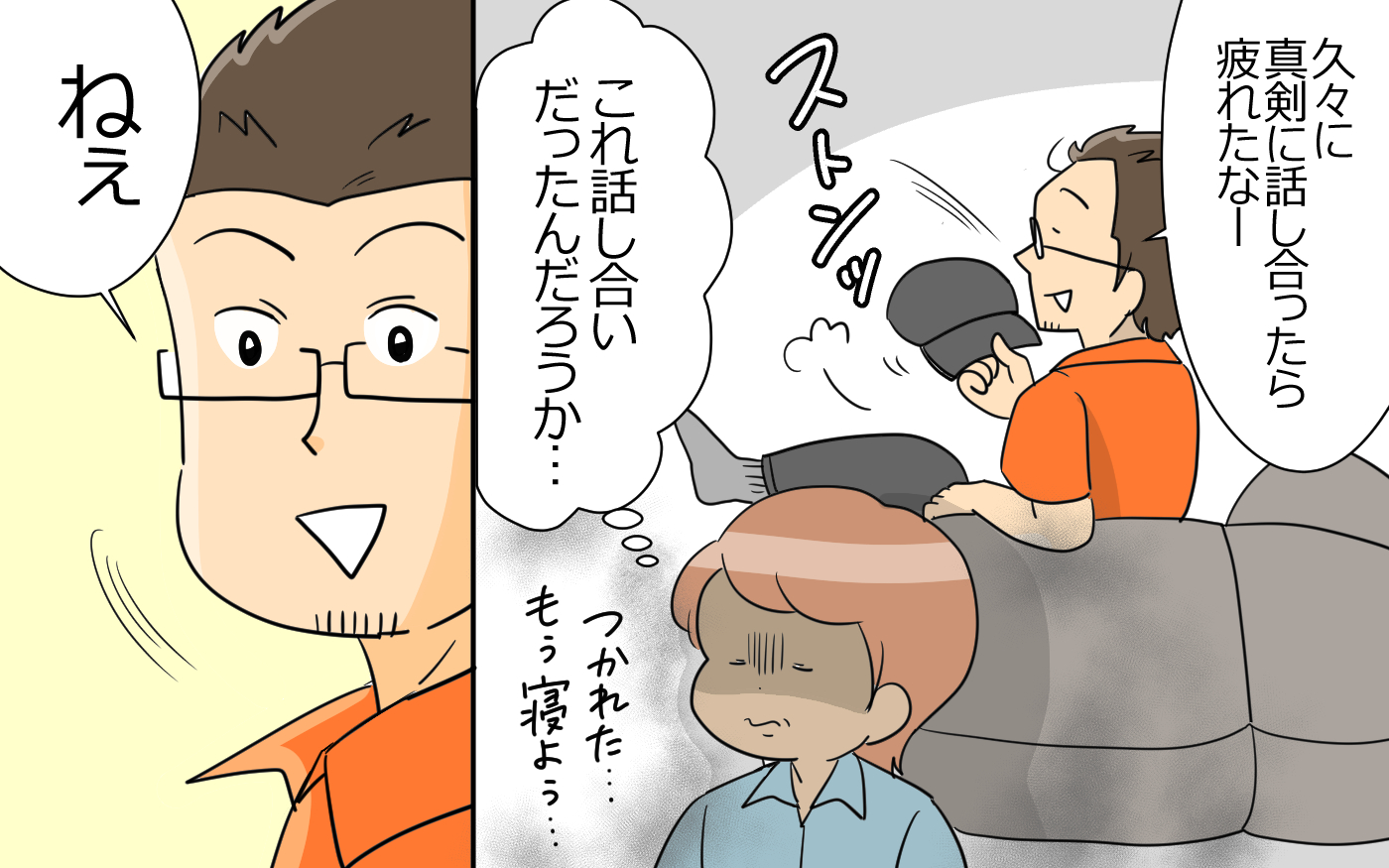 夫から逆に説教されて、腹が立ちながらも私なりに歩み寄る努力をしようと思いました。だから、夫にも約束を守る努力をしてほしい。