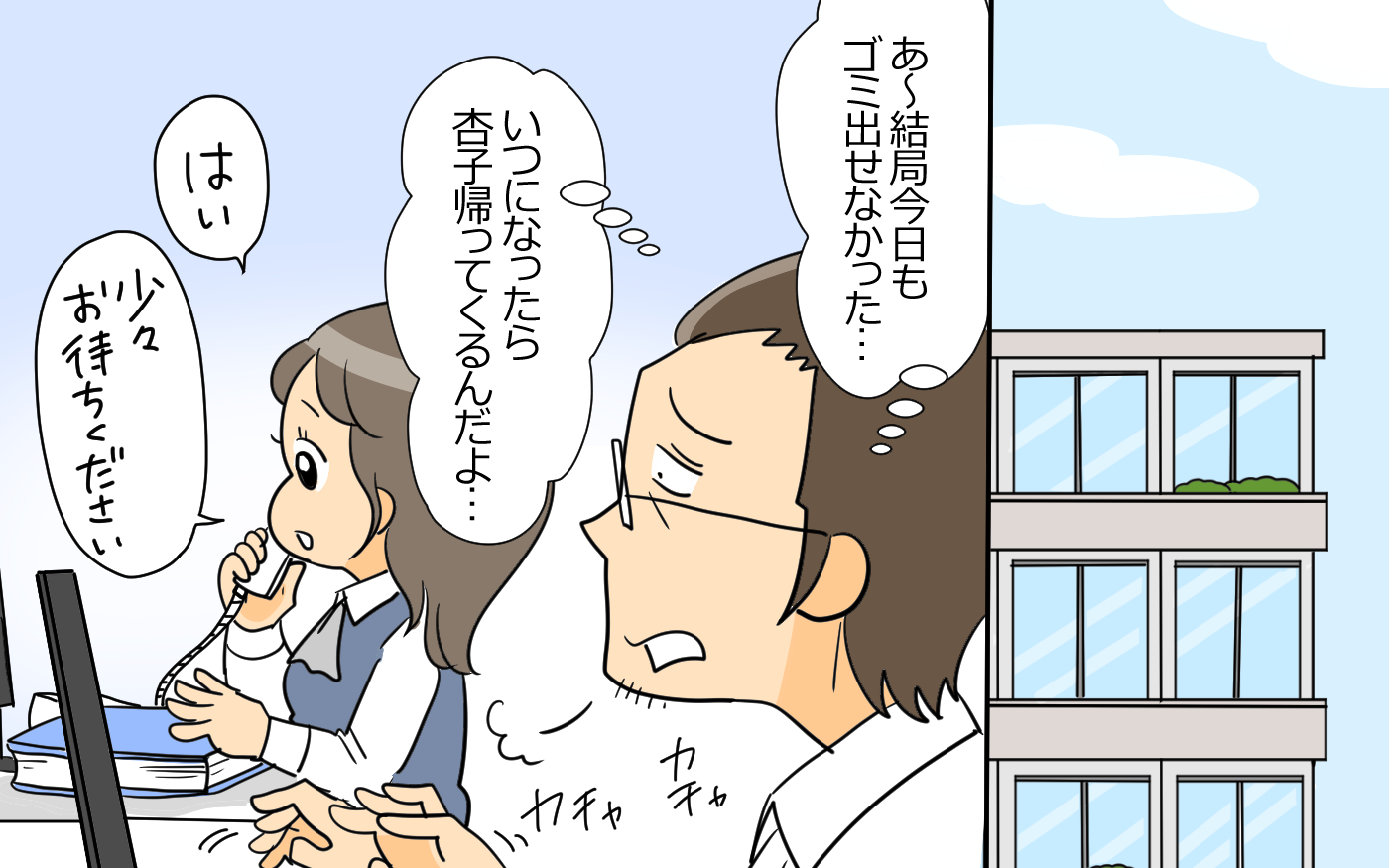 しかも、マンションの決まりが厳しくて、杏子がいないとゴミを出すこともできません。全部杏子がいないせい…。