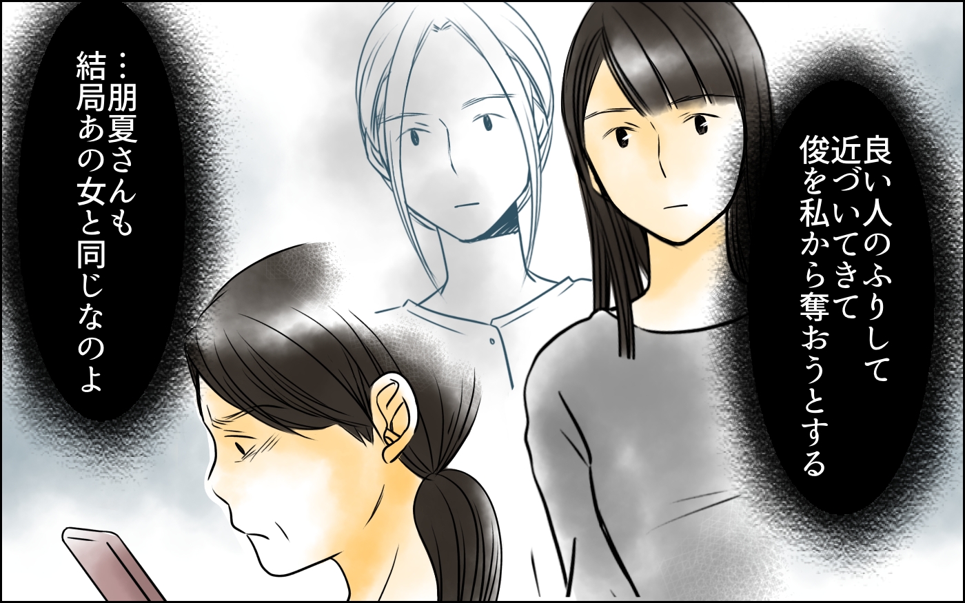 これまで俊に邪険に扱われたことなどありませんでした。だけれども朋夏さんと結婚し、そして流産して以降、俊は朋夏さんにすごく気をつかうようになりました。朋夏さんの流産は悲しいことだけれども、それは彼女自身にも原因はあったと思うのに…。