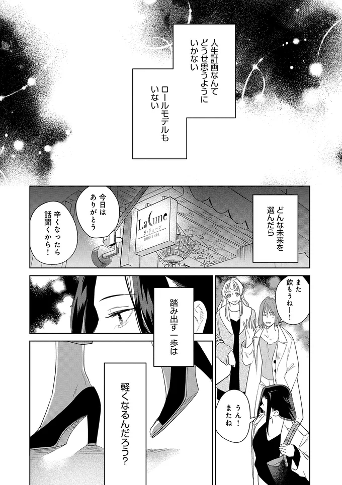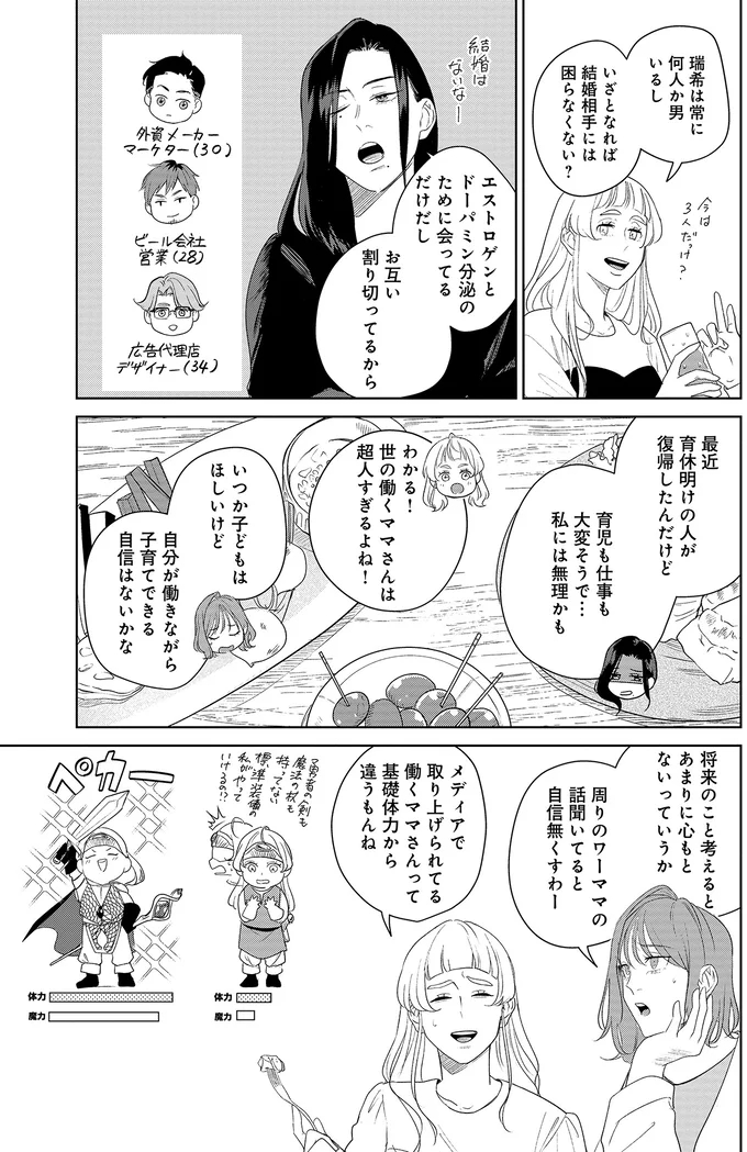 瑞希は仕事に打ち込み、順調にキャリアを重ねてきましたが、育休から復帰した先輩の変化に戸惑いを覚えます。以前は頼れる上司だった彼女が、子どもの体調不良などで思うように働けないかもしれないと不安を抱えていたのです。瑞希自身も、周囲から「仕事ができる」と評価されていますが、いざ自分が海外転勤などを命じられたとき、本当に仕事を最優先できるのかという不安がよぎります。これまで仕事以外の人生を想像してこなかったことに気づき、この先の人生に、焦りを感じるのでした。