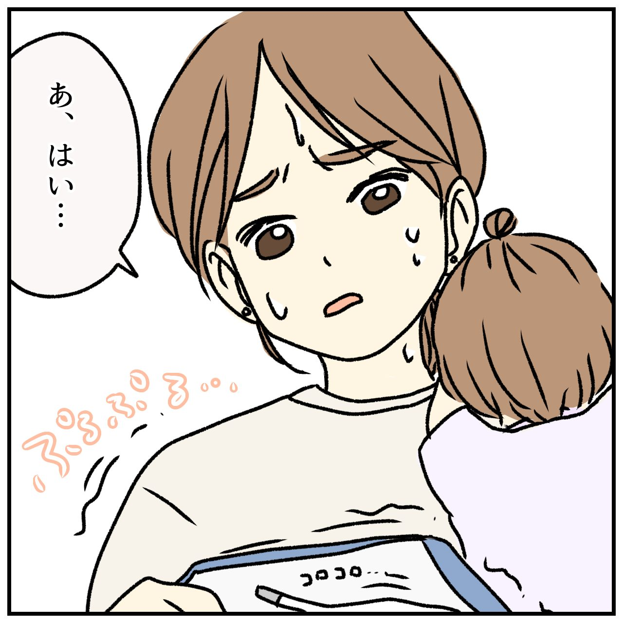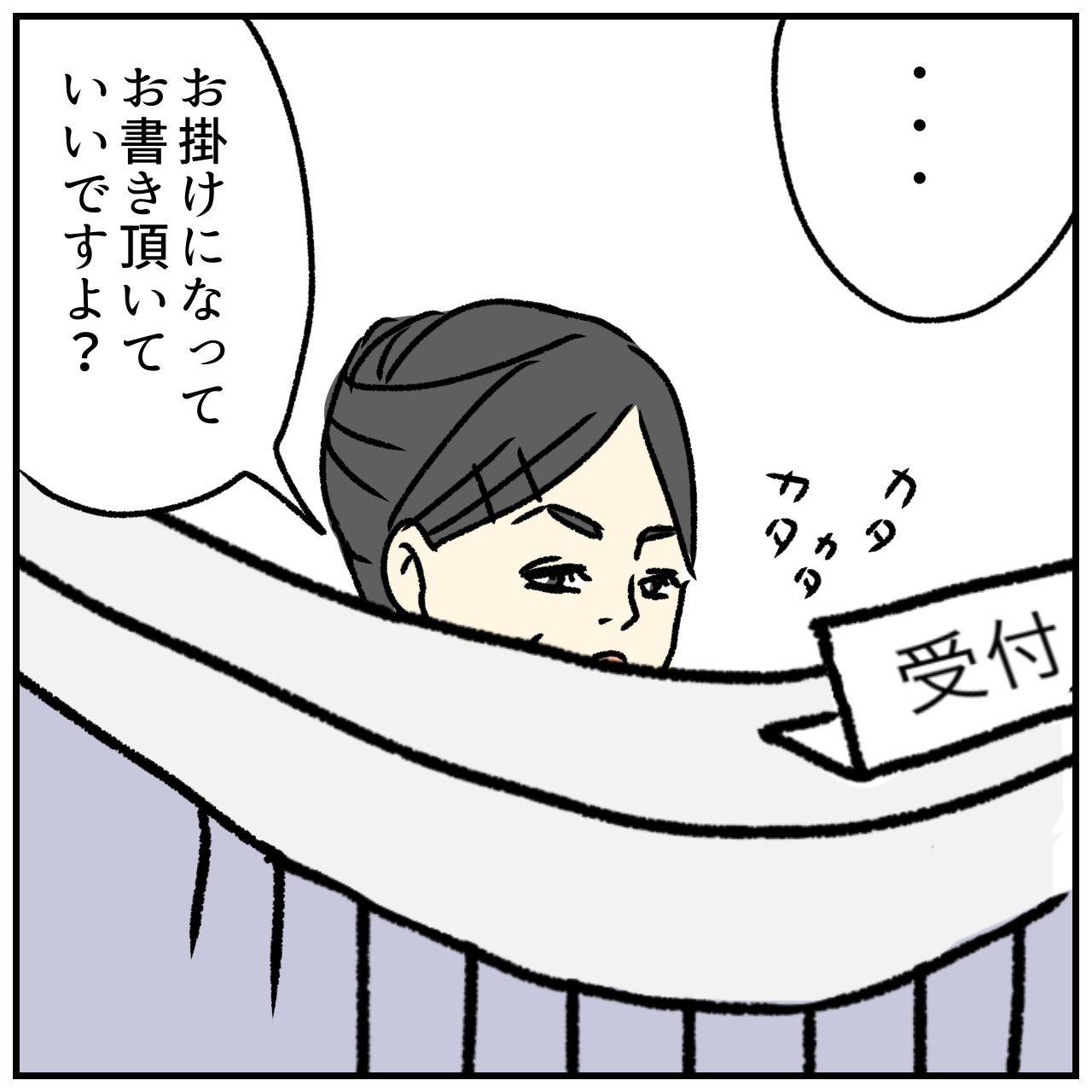 受付に問診票を提出したところ、渡した体温計で熱をはかってほしかったと、ため息混じりで注意されたぴんさん。ママ友が言っていた「B小児科の受付の人が怖い」という言葉を実感しました。