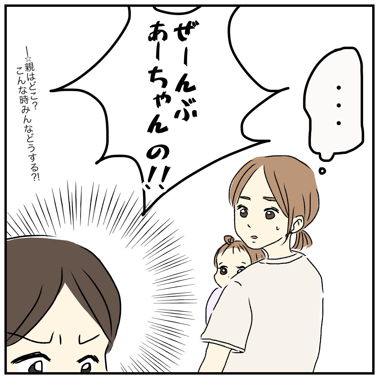 ぴんさんが「1人ではイスをこんなに使えないから、1つ貸してくれるかな?」と女の子に言葉をかけると、女の子は機嫌を損ねながらその場を離れました。一件落着かと思いきや、ぴんさんの背後からおもちゃが飛んできて……。